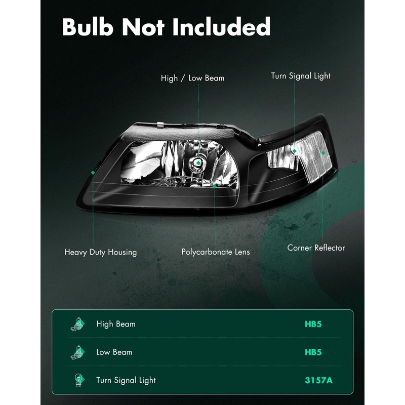 - 【Headlight Assemblies Fitment】 Headlight assemblies fits for ford for Mustang 2-Door 1999 2000 2001 2002 2003 2004