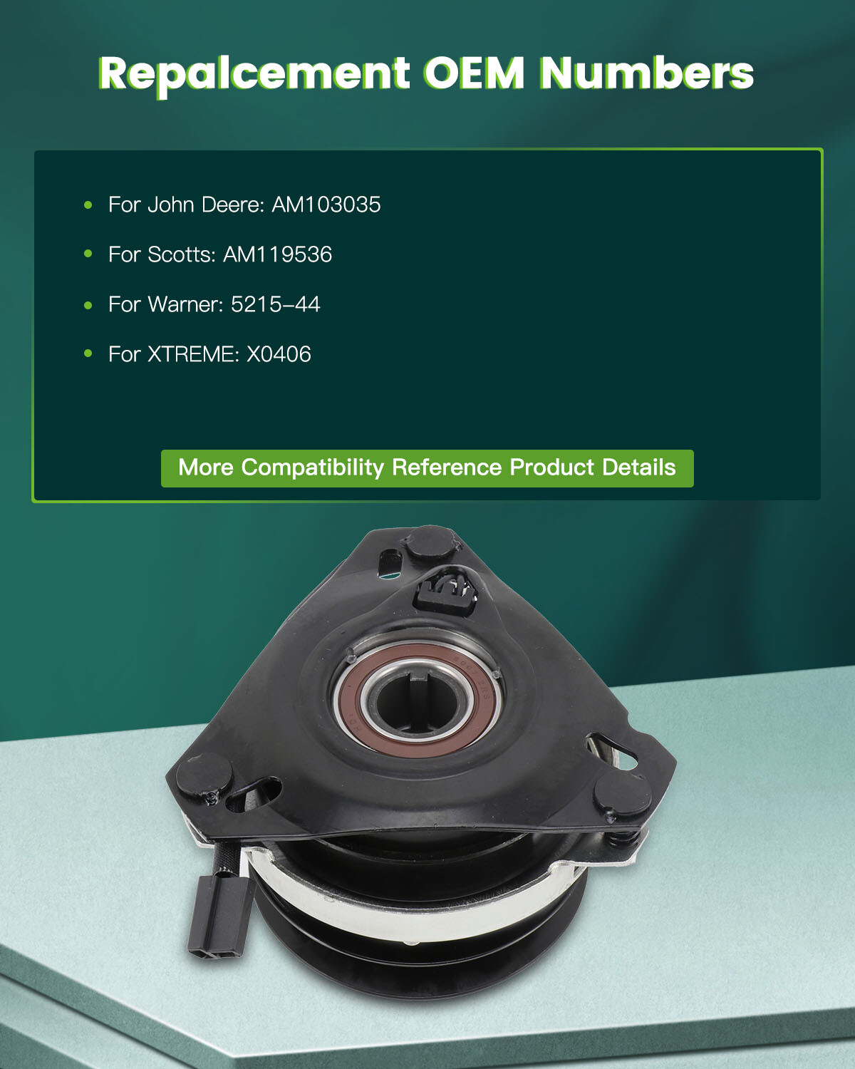 •  Replaces these part numbers: WARNER:5215-44, 5215-29, 5215-11 XTREME:X0182, X0182-K, X0406, X0406-K, X0178, X0161 JOHN DEERE:AM103035, AM108601, AM115093, AM119536 SCOTTS:AM119536