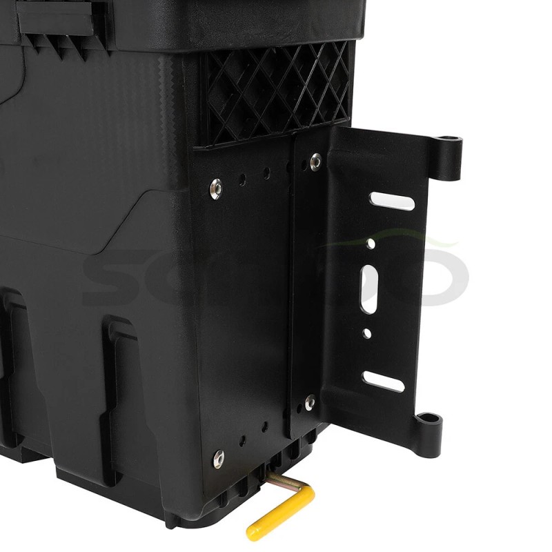 Connect The Connection Bracket To The Side Mounting Bracket Fasten The Bracket To The Car Body With M8 Bolt And M8 Nuta And Make A Mark At Other Hole And Then Remove The Bracket And Drill Hole On The Mark Put The Rivet Nut Into The Hole And Faster The Bracket With Hand Nut Holder Fasten The Whole Bracket To The Car Body According To The Other Hold Put The Plastic Shaft Pin In Correct Position Put The Storage Box In Correct Position Installation Finish