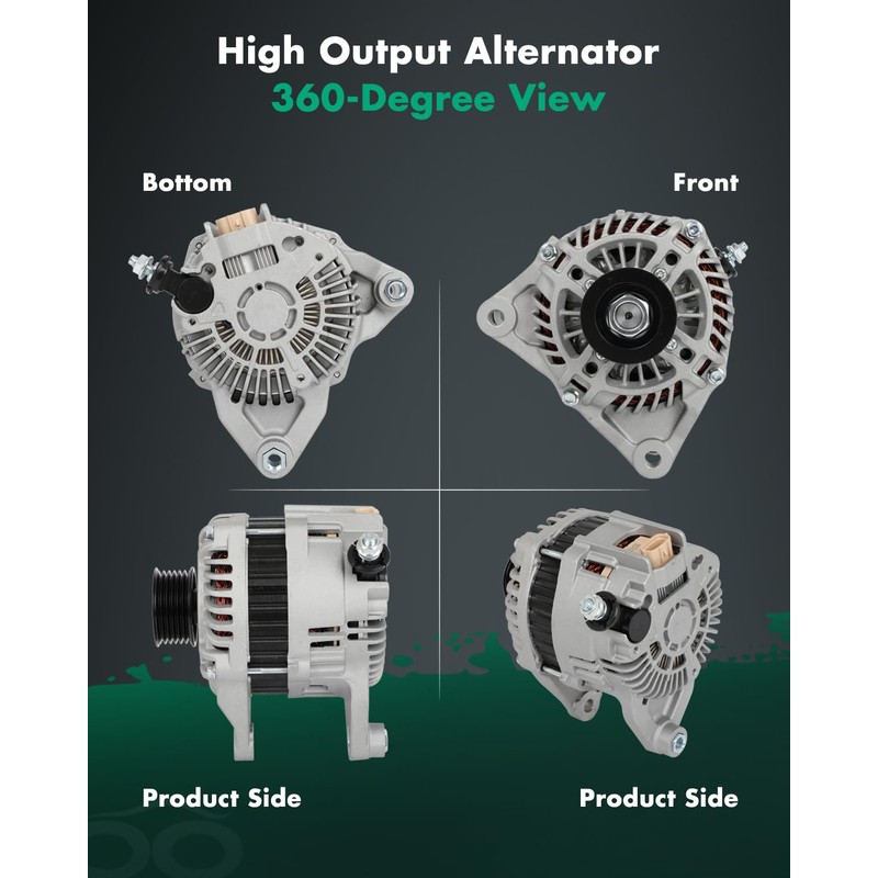 - Alternators Specifications- Voltage: 12V; Amperage: 100A; Rotation: CW(Clockwise); Regulator: IR ; Fan: IF; Grooves: 6-Groove Clutch Pulley; Condition: New, high output alternator is compact and lightweight, fully compatible with the electronic system of your vehicle