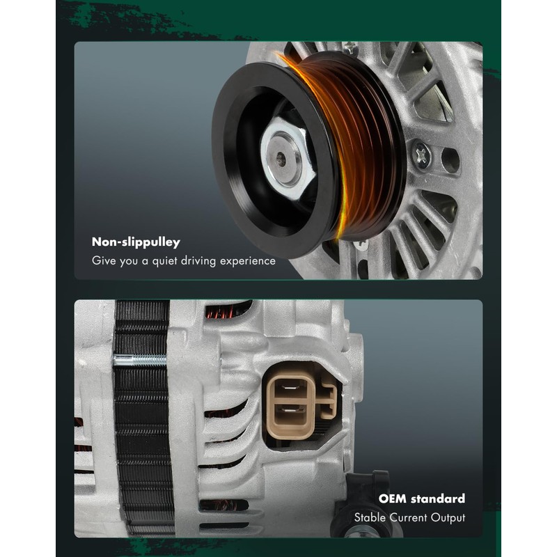 - Premium Alternators - New alternators throught precision CNC machined castings, Bearing 100% tested to OE standards. All key mounting points are measured for proper fit. Throught igorous and accelerated cycling tests to ensure the quality and durability of productInstalling this alternator is a breeze! Simply disconnect the battery's negative terminal, adjust the transmission belt to the correct tension (too loose = power loss; too tight = bearing damage), and tighten all screws securely