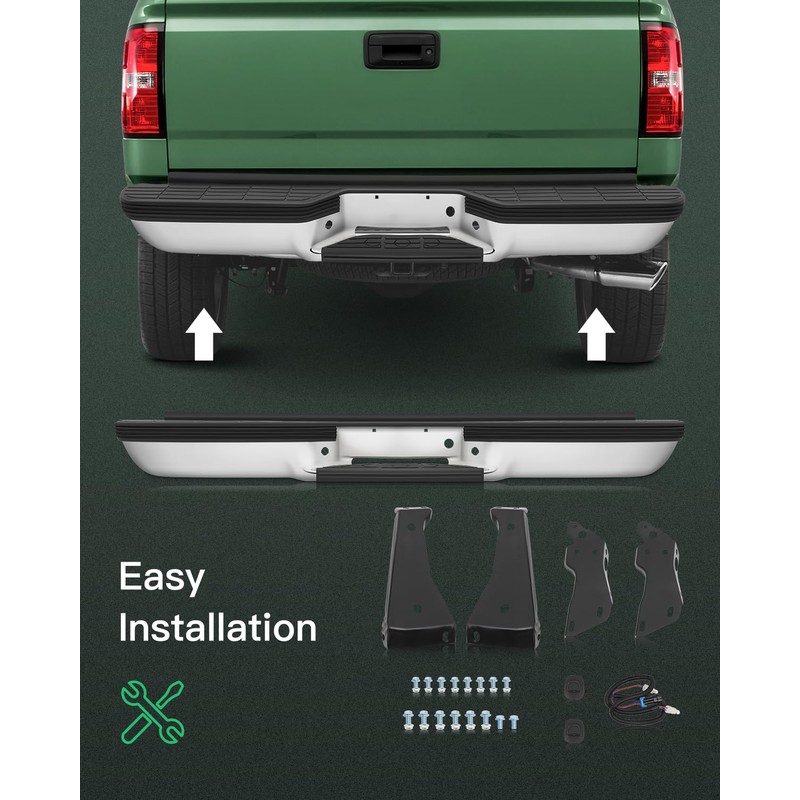 - [Durable Material] - Rear Step Bumper plated is made of heavy-duty steel,which is can effectively avoid damage to the vehicle caused by collisions