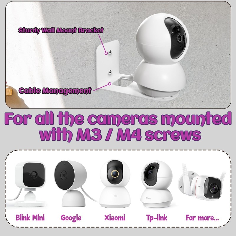Compatible with the indoor cameras which can be mounted with screws or bolts M3 or M4