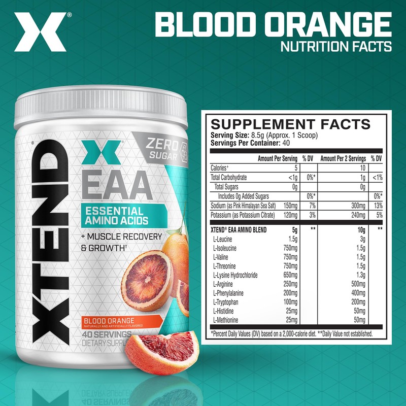 Scivation Scivation XTEND EAA + BCAA Powder | Muscle Recovery & Lean Muscle Growth | 9 Essential Amino Acids for Intra Workout or Post Workout Recovery | 10g EAAs Per 2 Servings | Blood Orange 40 Servings