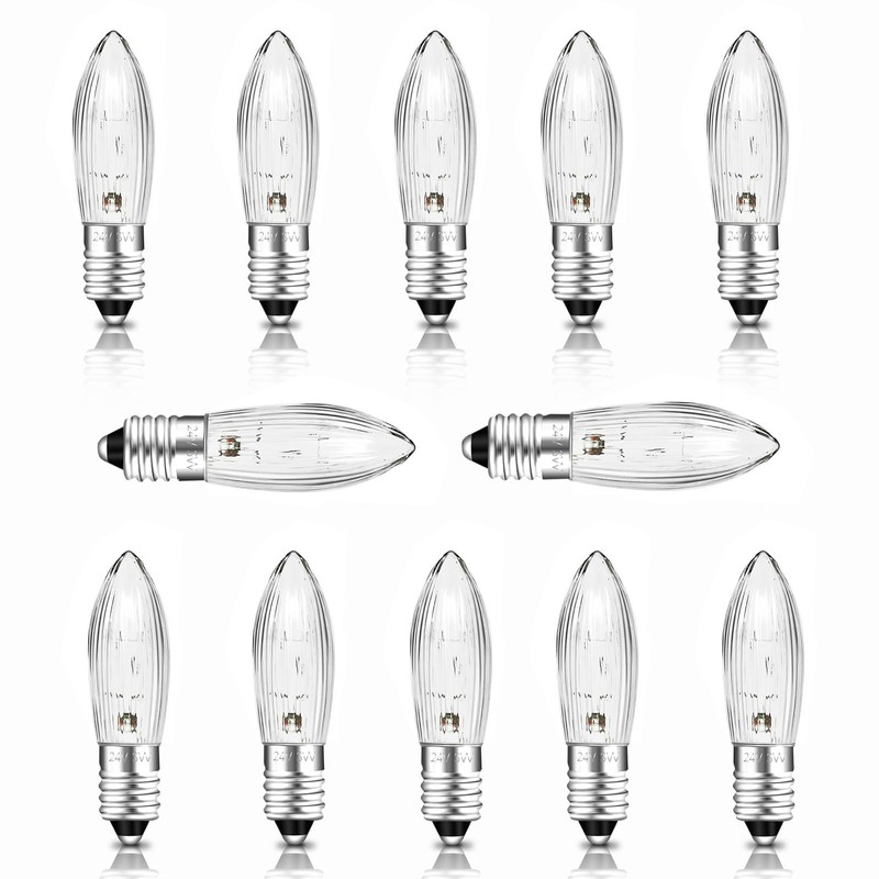 SCNNC SCNNC Riffelkerze Spitzkerze Topkerze E10 3W 24V, Schwibbogen Ersatzbirnen fr 10 Brennstellen, 30LM Warmwei? 2700K, Kerze Glhbirne Lichterbogen E10 fr Innen Lichterkette Weihnachtsbaum, 12 Stck