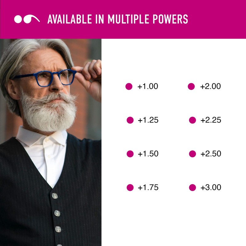 - EMBRACE THE CLARITY: When your up-close vision isn’t what it used to be, SCOJOs give you the power to live life unblurred. Our women’s and men’s reading glasses come in 8 ready-to-wear powers ranging from +1.00 to +3.00. So, no more struggling to read text messages or giving up in the middle of your book due to eyestrain. Looking for blue light blocking glasses without near-vision correction? Christopher Street glasses are available in a 0.0 magnification for blue light filter-only needs.