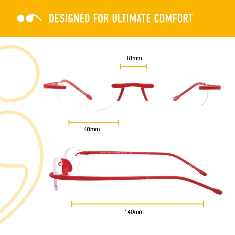 - SIMPLE YET SOPHISTICATED: Gels Originals are all about effortless style; all about understated elegance. With their rimless design and face-flattering oval lenses, these readers for men and women are compliments waiting to happen. And we’ve brought the frames to life in a myriad of unique colors. Love your readers classic & timeless? Colorful and full of character? You’ll find the look you want from our collection. Feel free to grab a couple of different colors to always suit your mood.