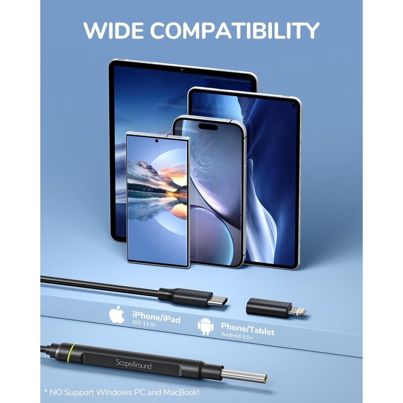 - 🚀【Easy to Use】Enjoy a hassle-free ear cleaning experience with ScopeAround's plug-and-play otoscope, which directly plugs into your Android device for real-time image display. Please note it's not compatible with Windows PCs.