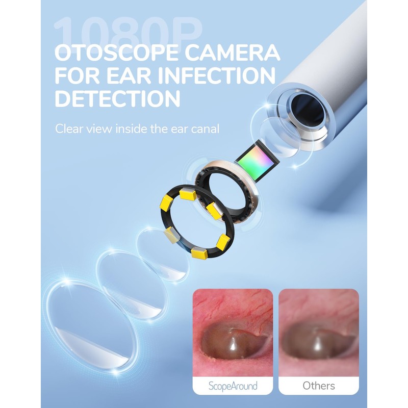 - 🔎【High-Definition Imaging】Experience superior visual clarity with ScopeAround's 1080P high-resolution ear camera and user-friendly app. With six LED lights for excellent visibility, you can take charge of your ear health from home.
