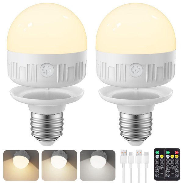 - innovative Rechargeable Light Bulb : a versatile lighting solution designed to meet your various needs. This rechargeable light bulb functions as both a battery-operated light bulb and a remote-controlled puck light, Bulb diameter 60mm,40W Equivalent,350Lumens, Remote control, Detachable charging, IP44 waterproof, Press power switch to operate if remote lost, E26 socket (Search "B0CP8RCKQM" to order E12)