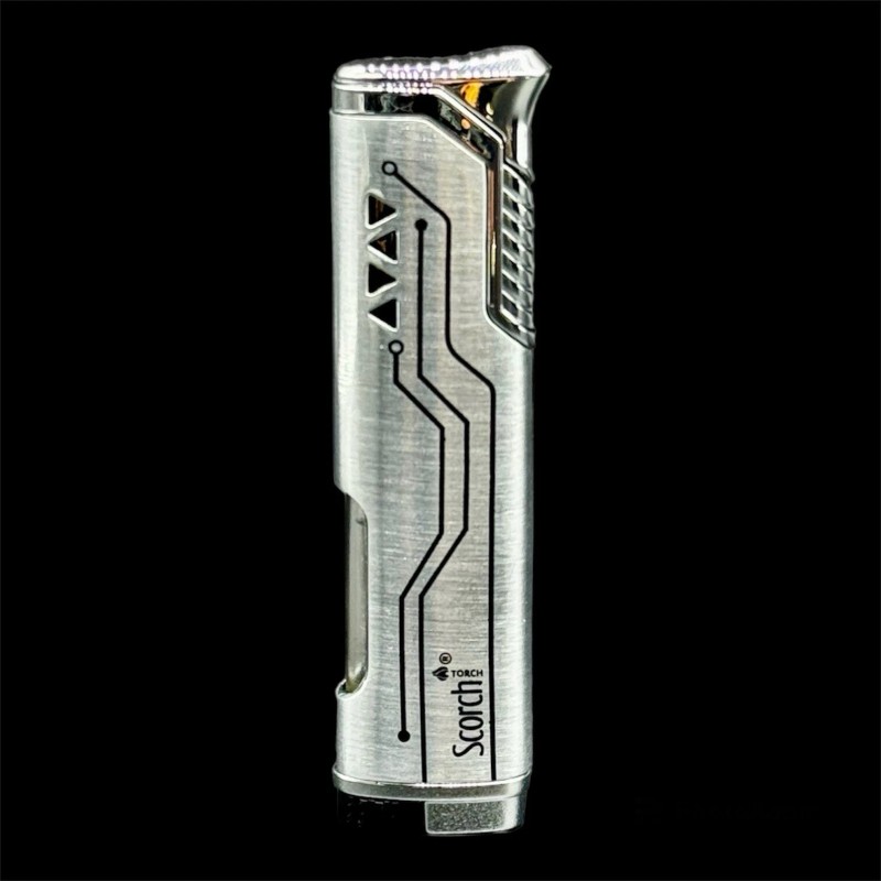 SCORCH TORCH Single Flame Butane Refillable Slim Scorch Torch Lighter 61766 - Silver