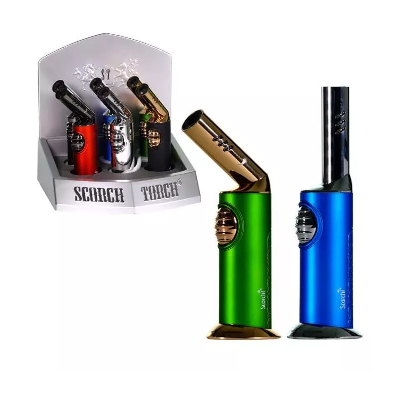Scorch Torch Single Flame Multi Angle Butane Refillable Torch Lighter - Silver