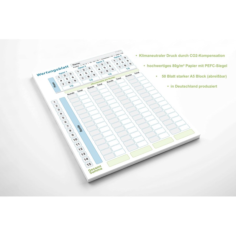 - Good readability: the pads in the large DIN A5 format make it easier to enter and read the game values enormously and can therefore impress even for seniors