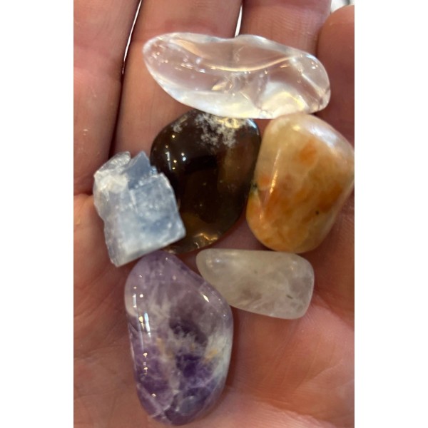 Scorpio Stone Combo Set, Amethyst ,Quartz, Smoky ,Calcite ,Sunstone ,Moonstone