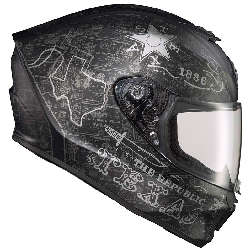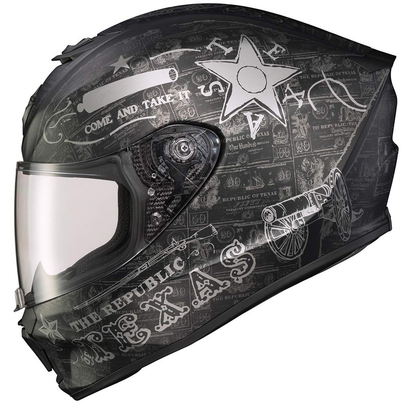 ScorpionEXO R420 Full Face Motorcycle Helmet with Bluetooth Ready Speaker Pockets DOT SNELL Lone Star (Black/Silver-3X)
