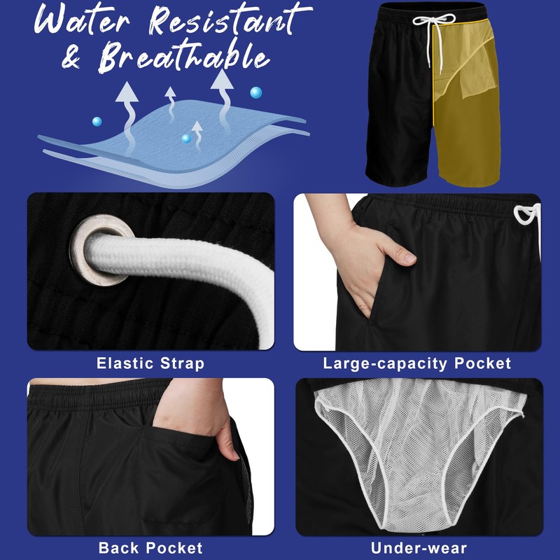 - 【FASHIONABLE SWIM SHORTS with Mesh lining and three pockets】:soft and comfortable lining.With two pockets on each side and one more backside pocket,two side pockets for safer storage, you'll enjoy the safe and relaxe feeling when you dress this mens swim trunk.