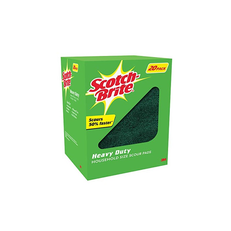 - Cleans tough, baked-on messes. Scotch-Brite Heavy Duty Scour Pad is for when it's time to pull out all the stops. With its heavy-duty cleaning strength, you'll save on elbow grease when scrubbing the kitchen clean. Great for any serious indoor and outdoor scouring jobs. Tough synthetic fibers, abrasives and resins clean grills and ovens- Removes baked-on foods from pots and pans, replacing scrapers, steel wool and metal sponges- Also scrubs floors