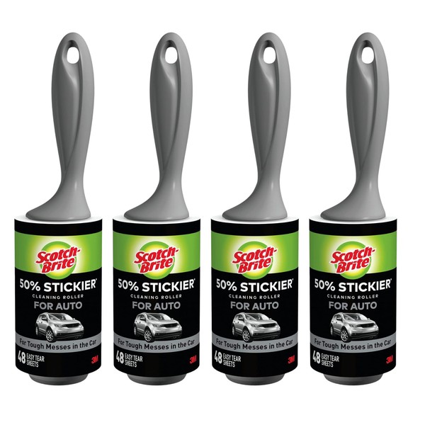 Scotch-Brite 50% Stickier Auto Lint Roller 4 Rollers 48 Sheets Per Roller (192 Sheets Total)
