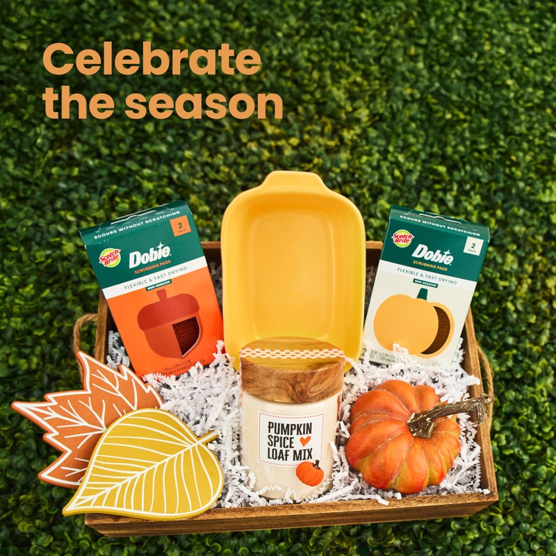 - PACK OF TWO: Two Scotch-Brite Harvest Dobie Scrubbing Pads, in a delightful copper acorn color, perfect for helping you achieve a cleaner home this fall season