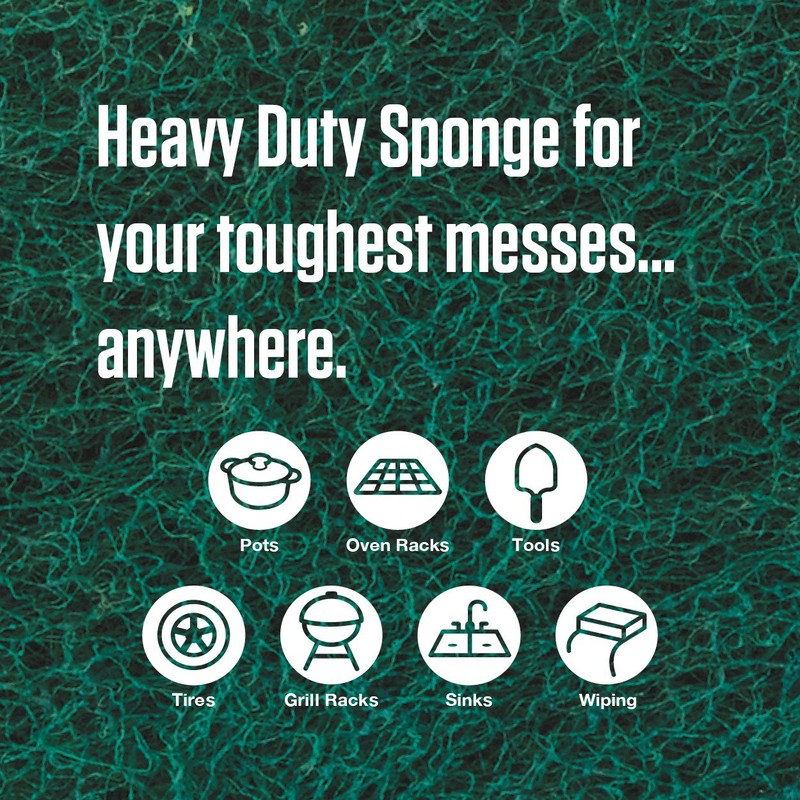 Don't fight baked-on, stuck-on messes - grab a Scotch-Brite Heavy Duty Scrub Sponge. With scrubbing fibers made from 100% recycled content, these long- lasting scrub sponges take on the toughest messes around the home.