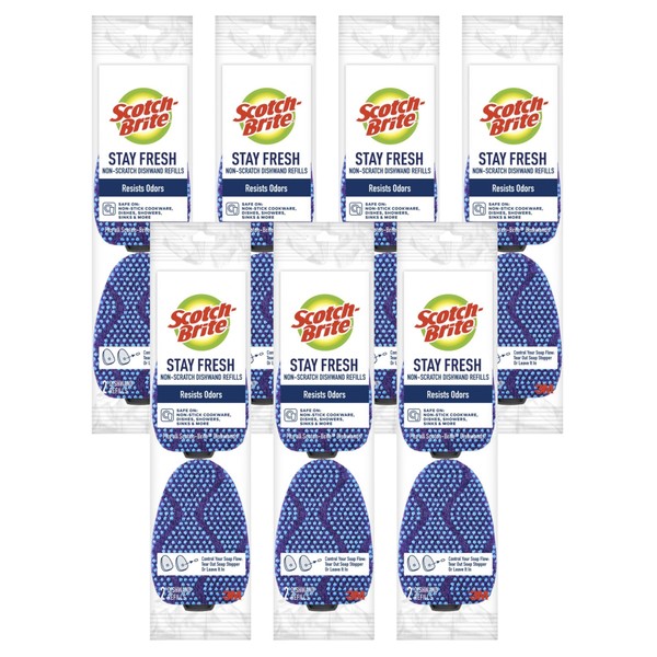 Scotch-Brite Scrub Dots Non-Scratch Dishwand Refills, Blue, 14 Replacement Heads (7 Packs of 2), Safe for Non-Stick Cookware, Dishes and Kitchen Surfaces