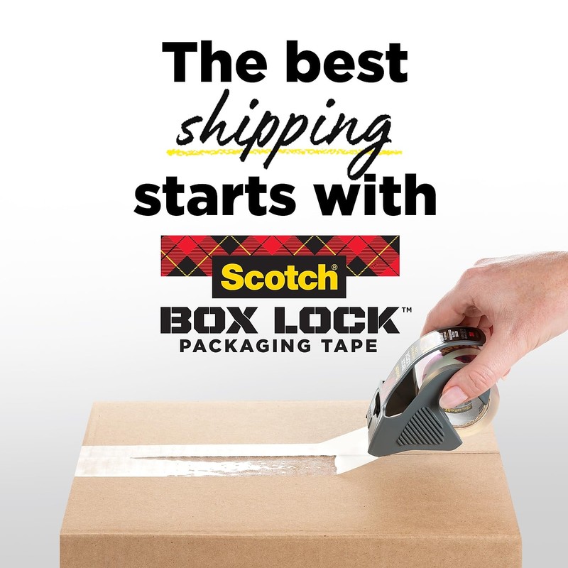 Scotch Box Lock Packaging Tape sticks instantly to any box! It has the power of extreme grip to ensure boxes stay securely sealed, even during rough handling. Its new advanced adhesive creates a secure seal over box edges, and its thickness and durability reduces splitting and tearing and makes it easier to find the start of the roll. This tape can be used to seal any type of box, including harder-to-stick to 100% recycled boxes.