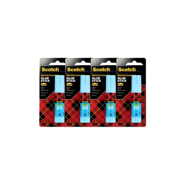 Scotch Removable Restickable Glue Stick, .49oz, Repositionable Stick, 4 Pack