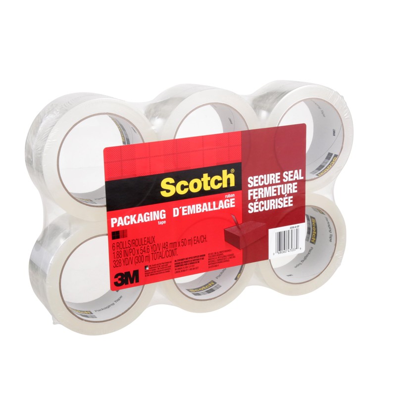Scotch Secure Seal Packaging Tape, Packing Tape for Shipping and Moving, 1.88 in x 54.6 yd, 6-Pack