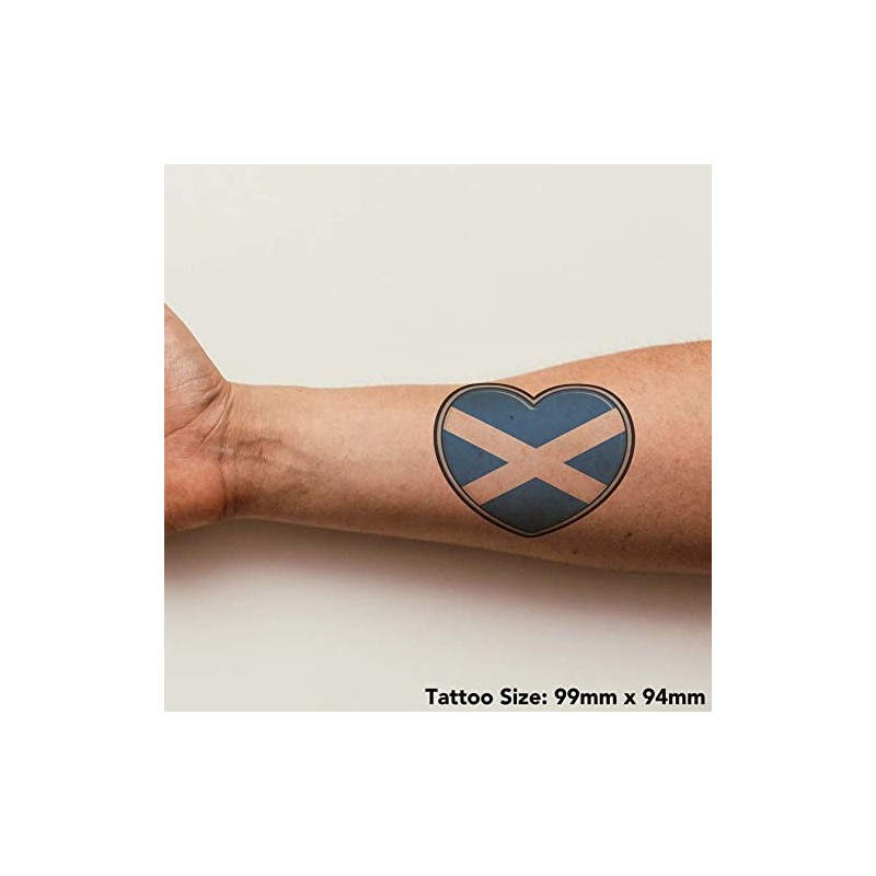 'Scotland Flag Heart' Temporary Tattoo - Water Resistant, Skin-Safe, Non-Toxic Transfer (TO00060047)