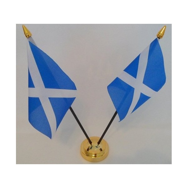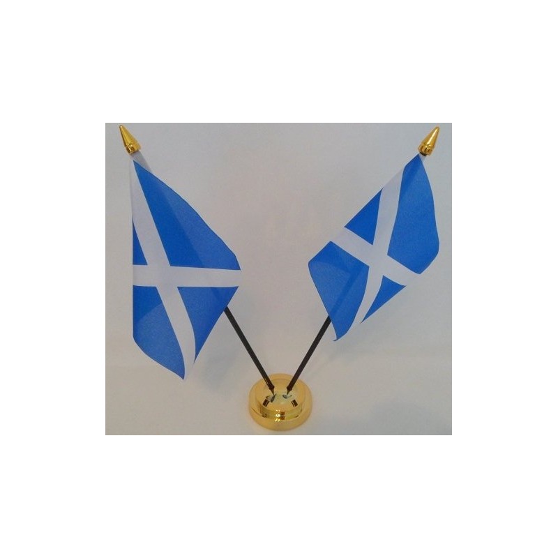 Scotland St Andrews Cross Saltire Scottish 2 Flag Desktop Table Centrepiece Display With Gold Base