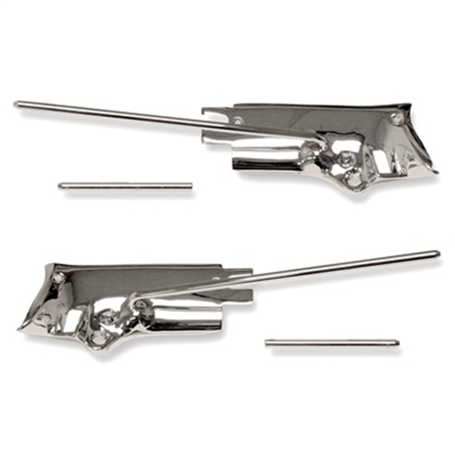 Made by Scott Drake, Convertible Sun Visor Brackets and Rods! They feature show-car quality triple-chrome plating. Includes L.H. R.H. brackets with attached visor pivot rods.