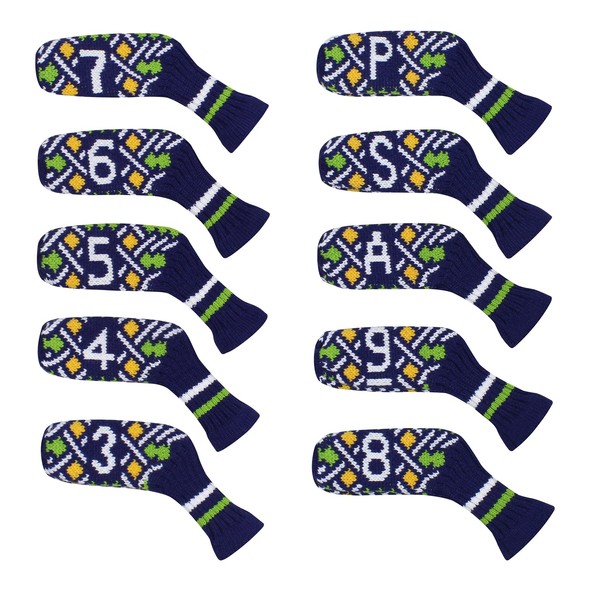 Scott Edward 10 Pcs Knitted Golf Iron Head Covers Adorable and Basically Socks Shape Washable & Durable Golf Club Head Protector