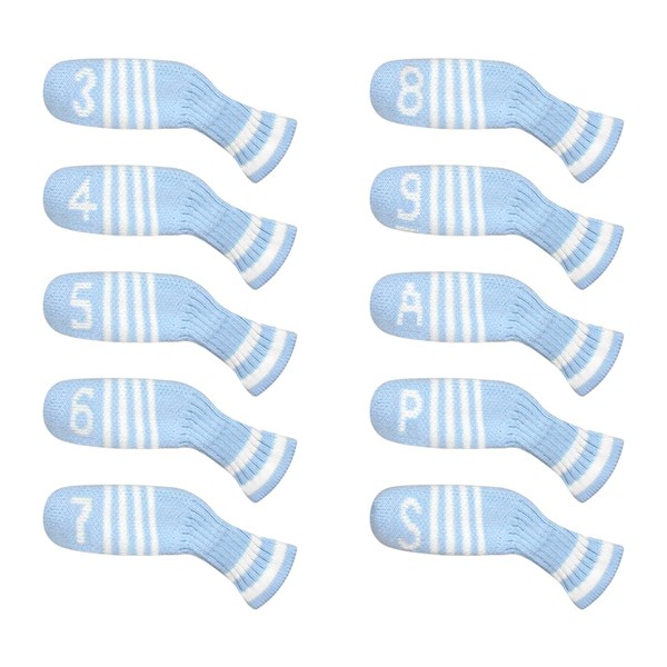 Scott Edward 7 Pcs/10 Pcs Golf Iron Covers Cuteness Knitted Socks Shape Washable & Durable Club Head Protector (Blue White)