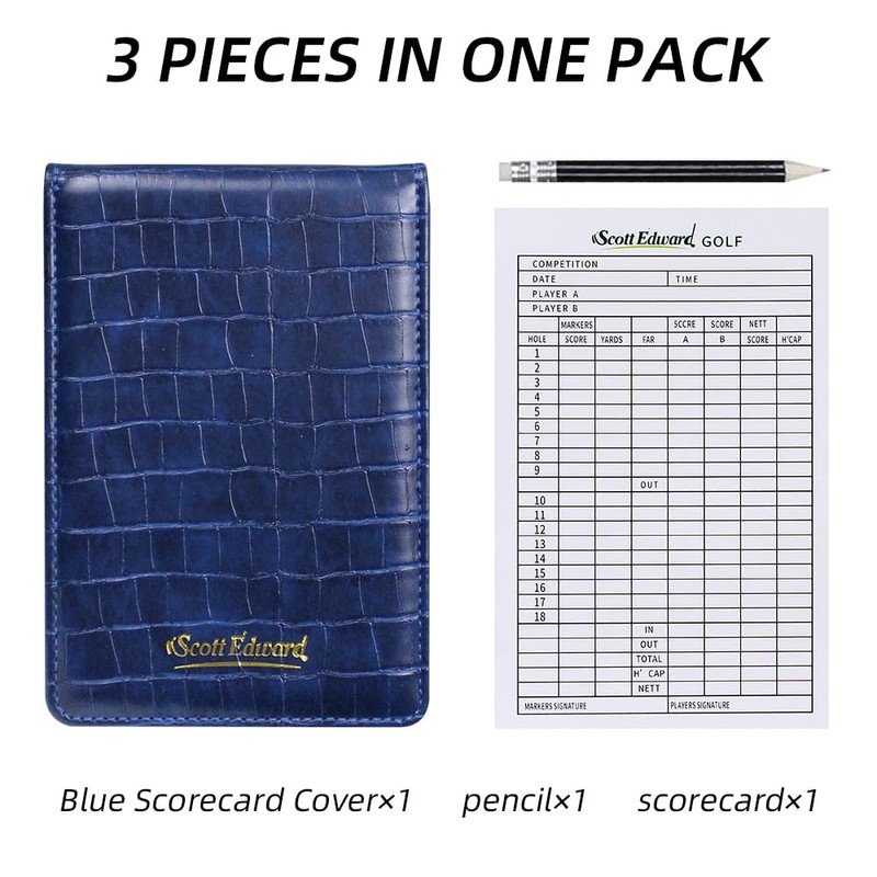 Scott Edward ゴルフ スコアカードカバー レザー スコアカードホルダー 統計とスコアトラッキング 防水 ソフト 厚手