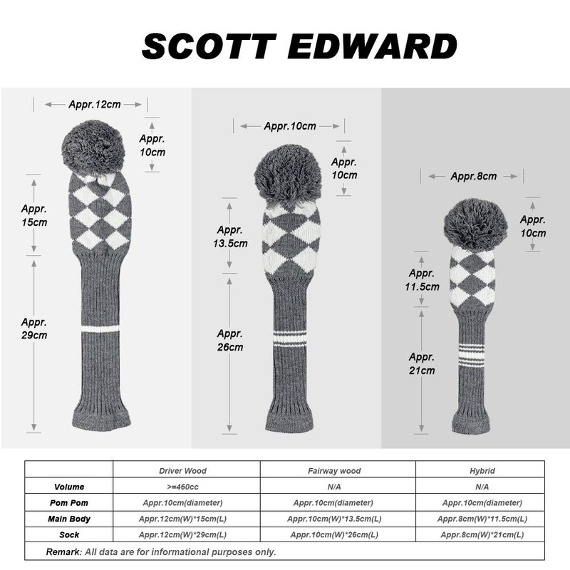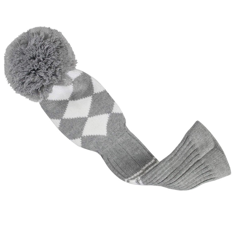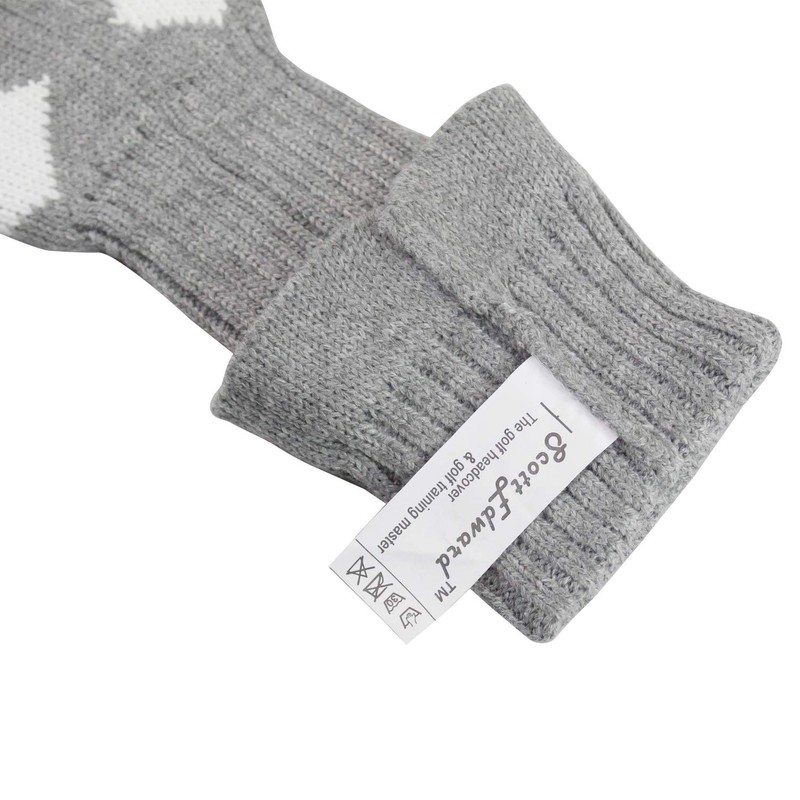 Scott Edward Golf Club Head Covers Set of 4 Grey White Argyles, Acrylic Yarn Double-Layers Knitted, with Rotatable Number Tags