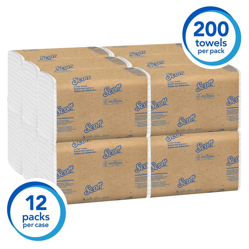 Scott Essential C Fold Paper Towels (01510) with Fast-Drying Absorbency Pockets, 12 Packs / Case, 200 C Fold Towels / Pack