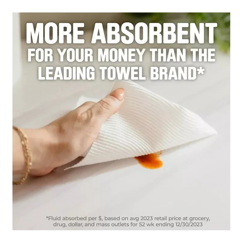 - Scott Paper Towels are more absorbent for your money** than the leading national towel (**Fluid absorbed per dollar, based on average retail price at a combination of grocery, drug, dollar, and mass outlets for 52 week 12/30/23)