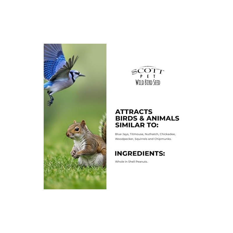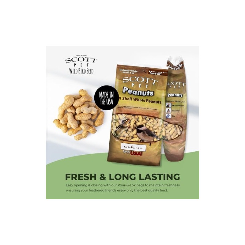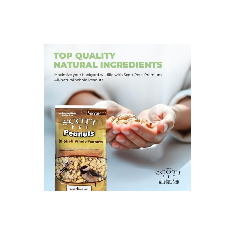 Scott Pet Scott Pet Wild Bird Seed, Whole Peanuts, 4 lbs Bag, No Mess, Feed, Great Source of Protein and Fiber, Peanuts for Outside Wild Birds