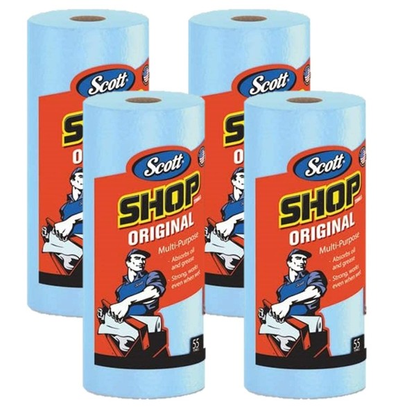 Scott Shop Towels, Blue Rolls, 55 Sheets & 4 Rolls Set