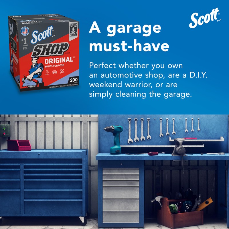 Scott Shop Original Blue Towels (75190), 9"x12" Cloth-like Paper Towel (8 Boxes of 200 Sheets, 1,600 Sheet Total)