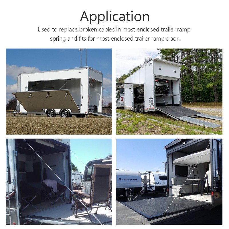 - Basic Function:This Enclosed Cargo Trailer Replacement Cable Wire is used to replace broken cables in most enclosed trailer ramp spring and fits for most enclosed trailer ramp door.