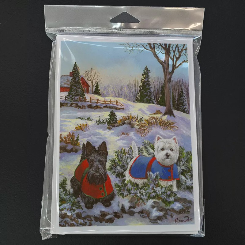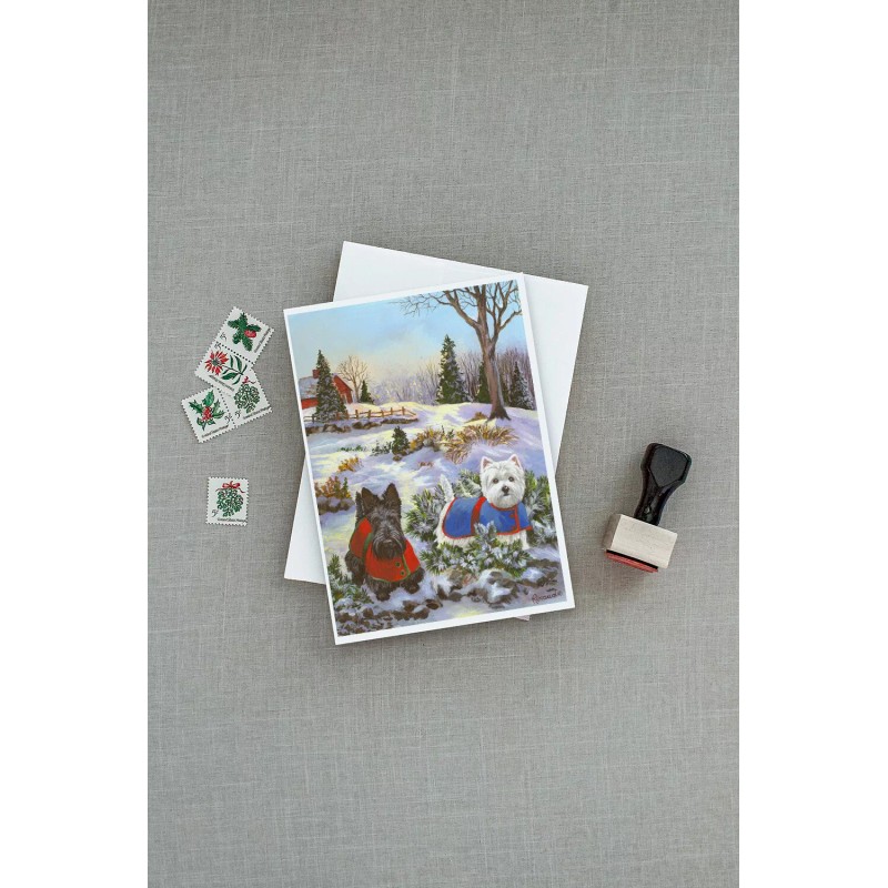 Scottie and Westie Christmas Pine Hill Cards Envelopes Pack of 8 PPP3170GCA7P