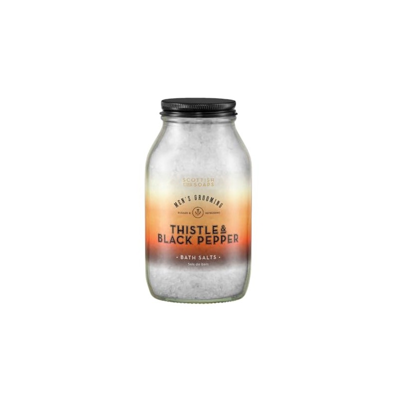 Ein entspannendes Badesalz aus der neuen Thistle & Black Pepper Herrenserie von Scottish Fine Soaps.