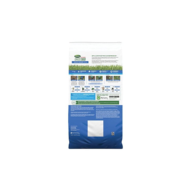 Scotts? Turf Builder? Grass Seed Sun & Shade Mix? thrives in a variety of conditions. This mix contains Root-Building Nutrition, a combination of ingredients that is expertly crafted to help establish deep roots to grow thick, green turf so that you can build a better, stronger lawn from the roots up. Scotts? Turf Builder? Grass Seed Sun & Shade Mix? is designed for full sun and dense shade, and has medium drought resistance with medium to high durability. It can be used to seed a new lawn or overseed an existing lawn. For best results, apply in the spring or fall when daily average soil temperatures are consistently between 55°F and 70°F or air temperatures are between 60°F and 80°F. We recommend using a Scotts? spreader to apply this product (please refer to spreader settings on product label). Water daily or as needed to keep the soil surface moist until the seedlings reach at least 2 inches tall. One 32 lb. bag of Scotts? Turf Builder? Grass Seed Sun & Shade Mix? has a new lawn coverage of 4,265 sq. ft. and an overseeding coverage of 12,800 sq. ft.