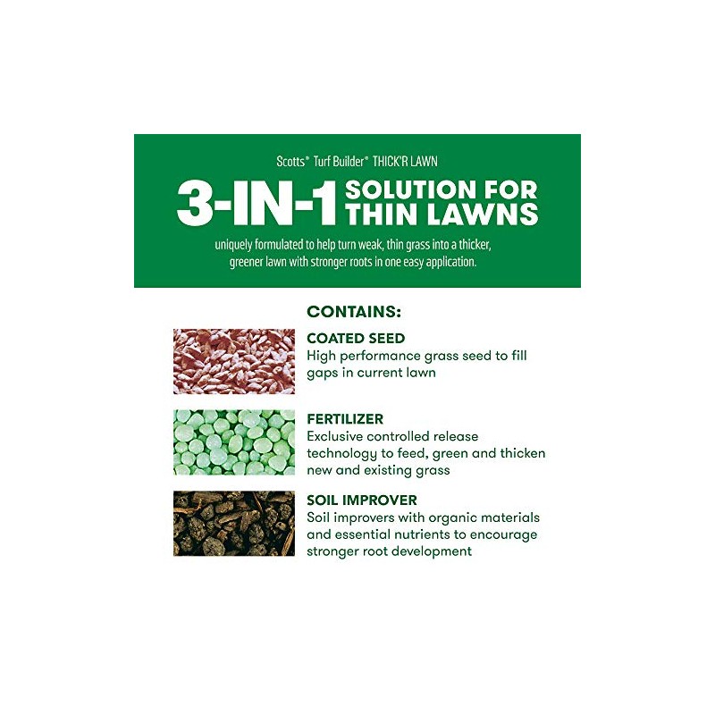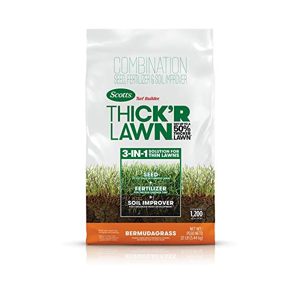 - 3-in-1 SOLUTION: Scotts Turf Builder Thick'R Lawn Bermudagrass is a convenient and easy to use 3-in-1 solution of grass seed, fertilizer, and soil improver to fix gaps and help with a thin lawn