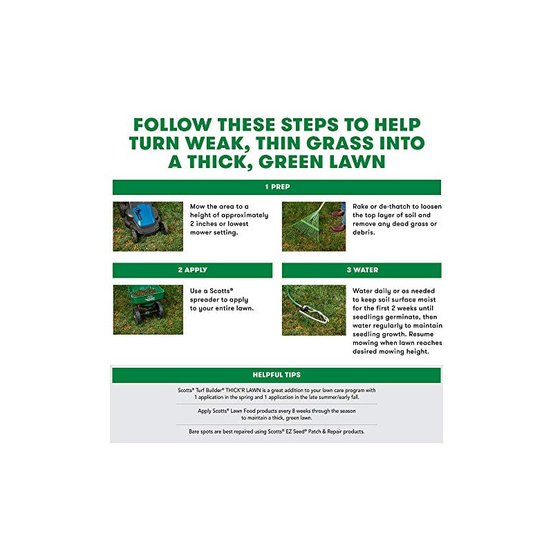 - EASY APPLICATION: For best results, use a Scotts Spreader and easily apply in late spring or early summer; Simply prep your existing lawn, apply and water; Your thicker lawn awaits