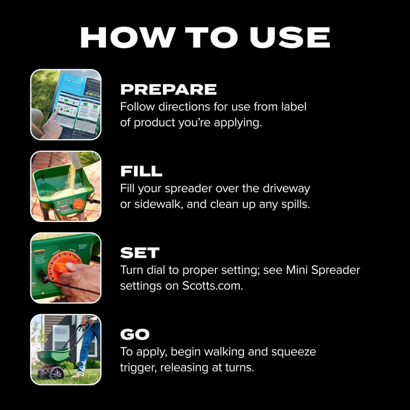 - Use the Scotts Turf Builder EdgeGuard Mini Broadcast Spreader to apply Scotts lawn care products