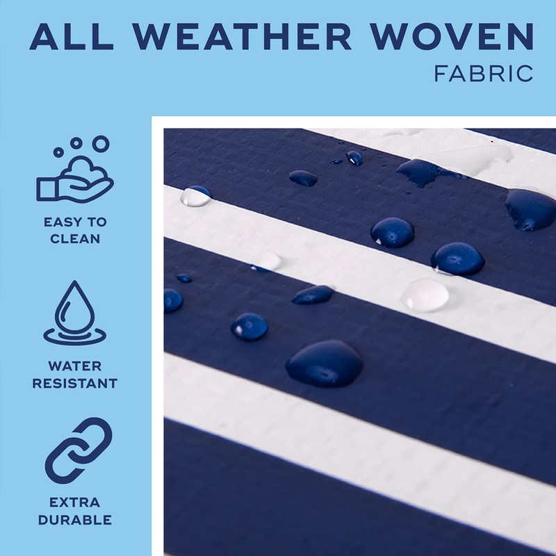 - ALL-WEATHER WOVEN fabric is made of interwoven polypropylene creating a light, but strong and water-resistant material (like a tarp). This durable, easy-clean fabric holds its shape when wet, dries fast, and softens with wear