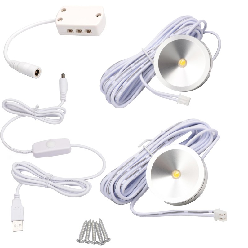 Scpopfer LED Spotlight with dimmer Indoor Mini Ultra-Thin 5V USB Breathable Surface Mounted Under Counter Lighting Wine Showcase Model Display Lamp Silver Shell Warm-White 3000K 2Pack