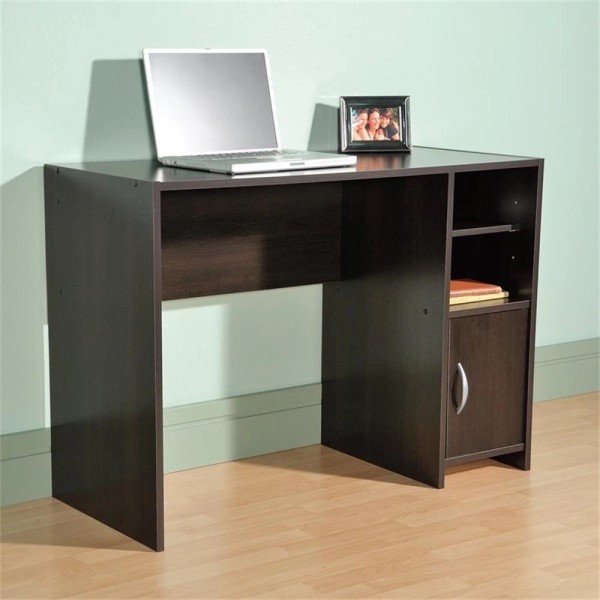 Redefine your workspace with the clean and simple design of this desk from the Scranton & Co collection. This home office desk features a large tabletop surface that provides you with a spacious workspace and room for all your must have office essentials - laptop, collection of notebooks, photos of your family and of course your favorite coffee mug. This office desk with door features open cubbyhole storage that includes an adjustable shelf to accommodate items of various heights like books, folders, or binders. Behind the door is a hidden storage area for all your additional storage needs-a stapler, important documents, and that pile of papers you swear you’re going to take care of tomorrow. Finished in a classic Cinnamon Cherry and accented with silver hardware, this stylish computer desk will give your office a fresh new look and will have you motivated and ready to work.